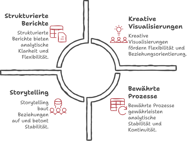 - Stabilitäts /Dauer Präferenzen: Betonen Sie bewährte Prozesse und Sicherheit. Erklären Sie Schritt für Schritt, warum eine Veränderung auch Kontinuität schafft und welche Traditionen erhalten bleiben.